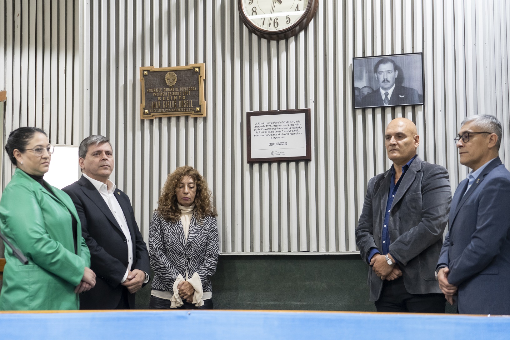 Esta mañana se realizó el Acto Conmemorativo por el Día de la Memoria, la Verdad y la Justicia tras cumplirse 50 años del último golpe militar en Argentina, en el recinto de la Legislatura Provincial, iniciativa del vicegobernador Fabián Leguizamón en su carácter de presidente de la Honorable Cámara de Diputados de la provincia de Santa Cruz. Del mismo participaron los diputados Fabiola Loreiro, Adriana Nieto y Eloy Echazú; autoridades provinciales; invitados especiales; trabajadores legislativos; público en general y medios de comunicación.