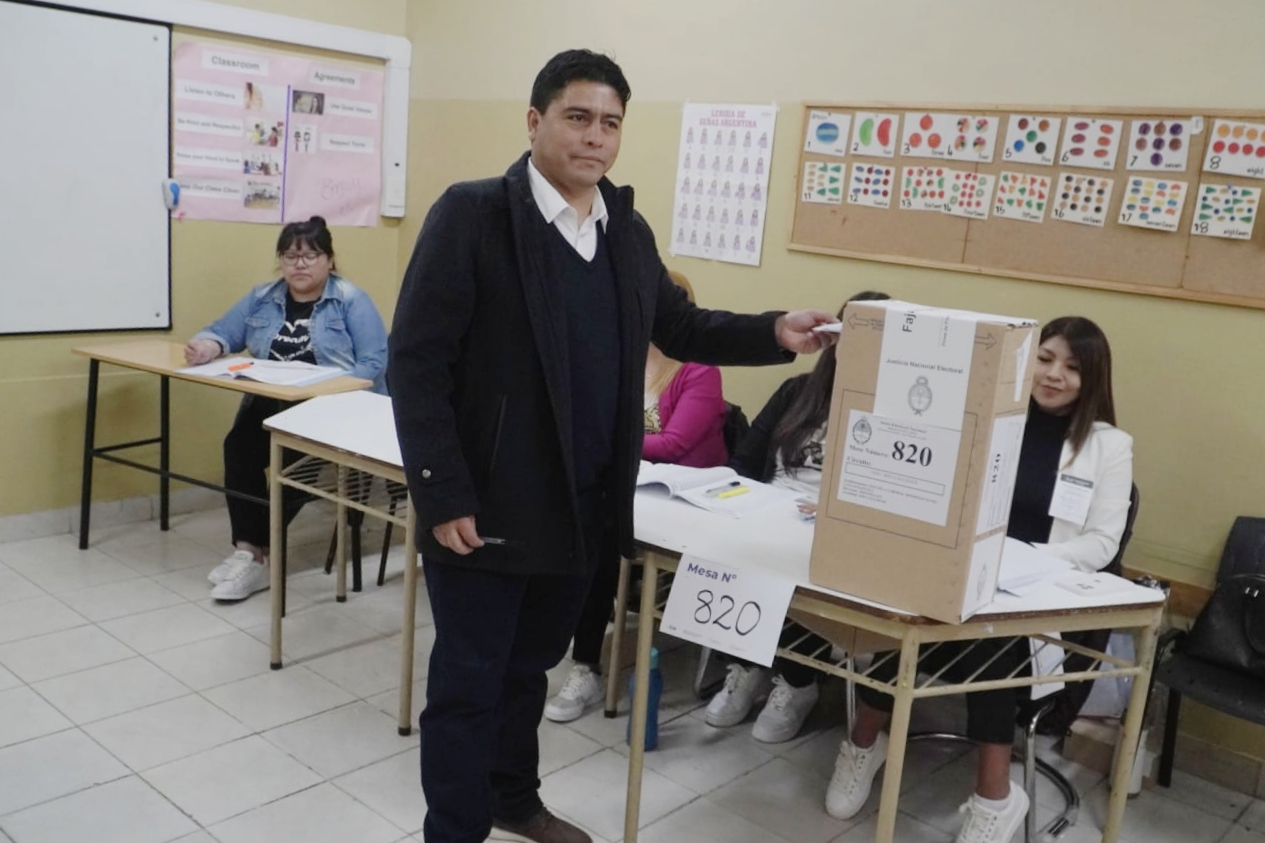 El mandatario llegó acompañado por el diputado provincial Pedro Luxen, la concejal Victoria Ojeda y otros integrantes de su espacio político. Tras sufragar, dialogó con Diario Nuevo Día y destacó la trascendencia del proceso electoral.
