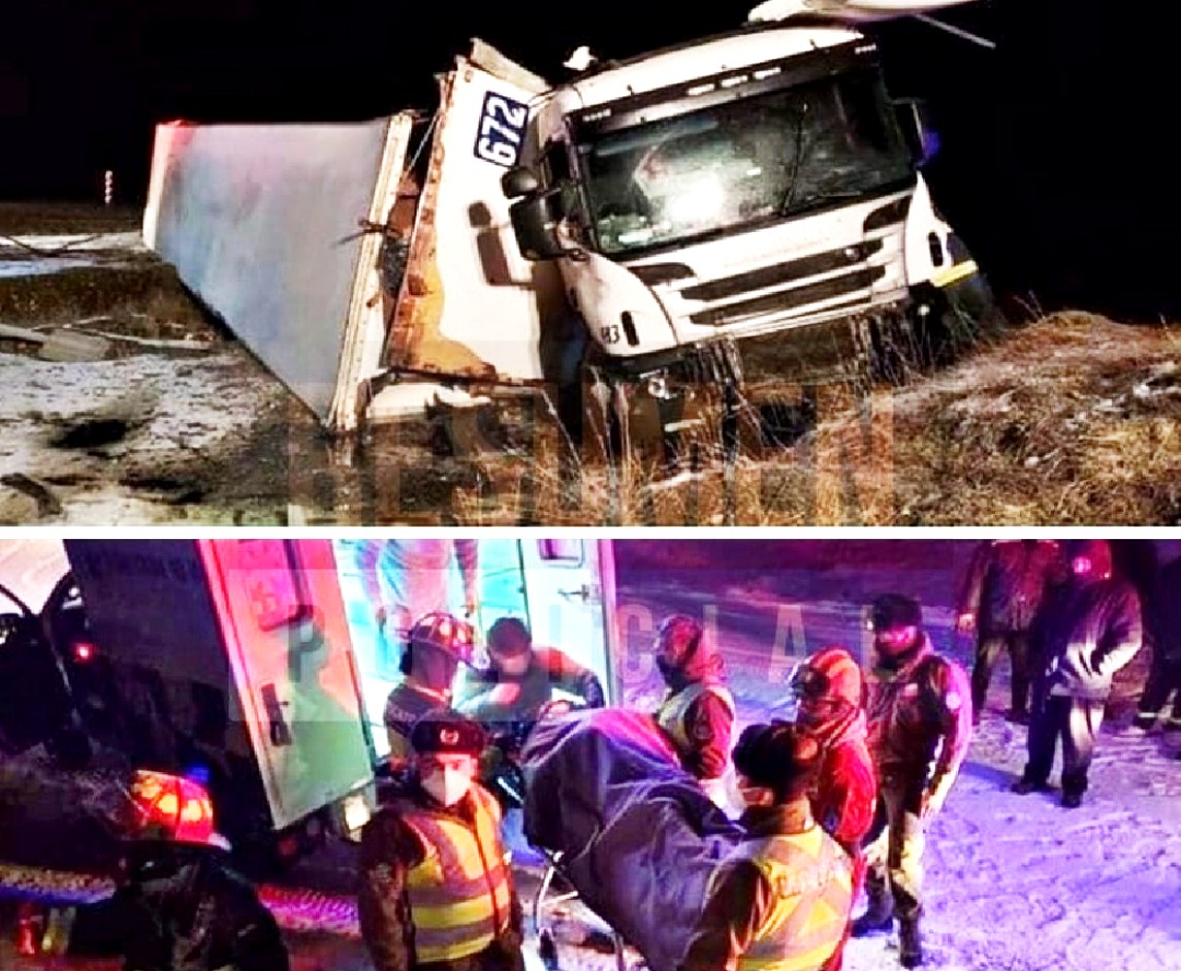 A causa de voladeros de nieve en ese sector, el camionero despistó y perdió el dominio de la unidad que terminó volcando con su semi.